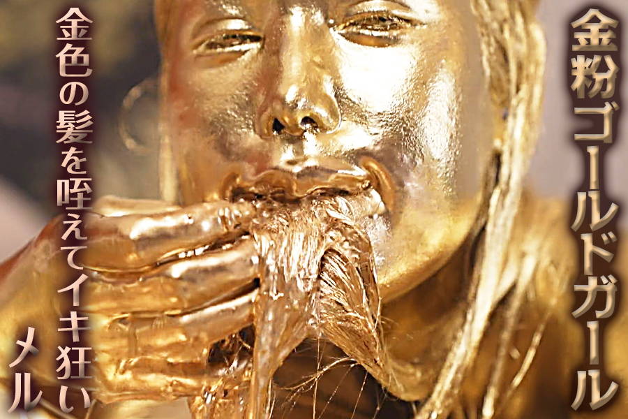 最後はべっちょり金粉まみれの長い髪を口に含んで恍惚の表情!!